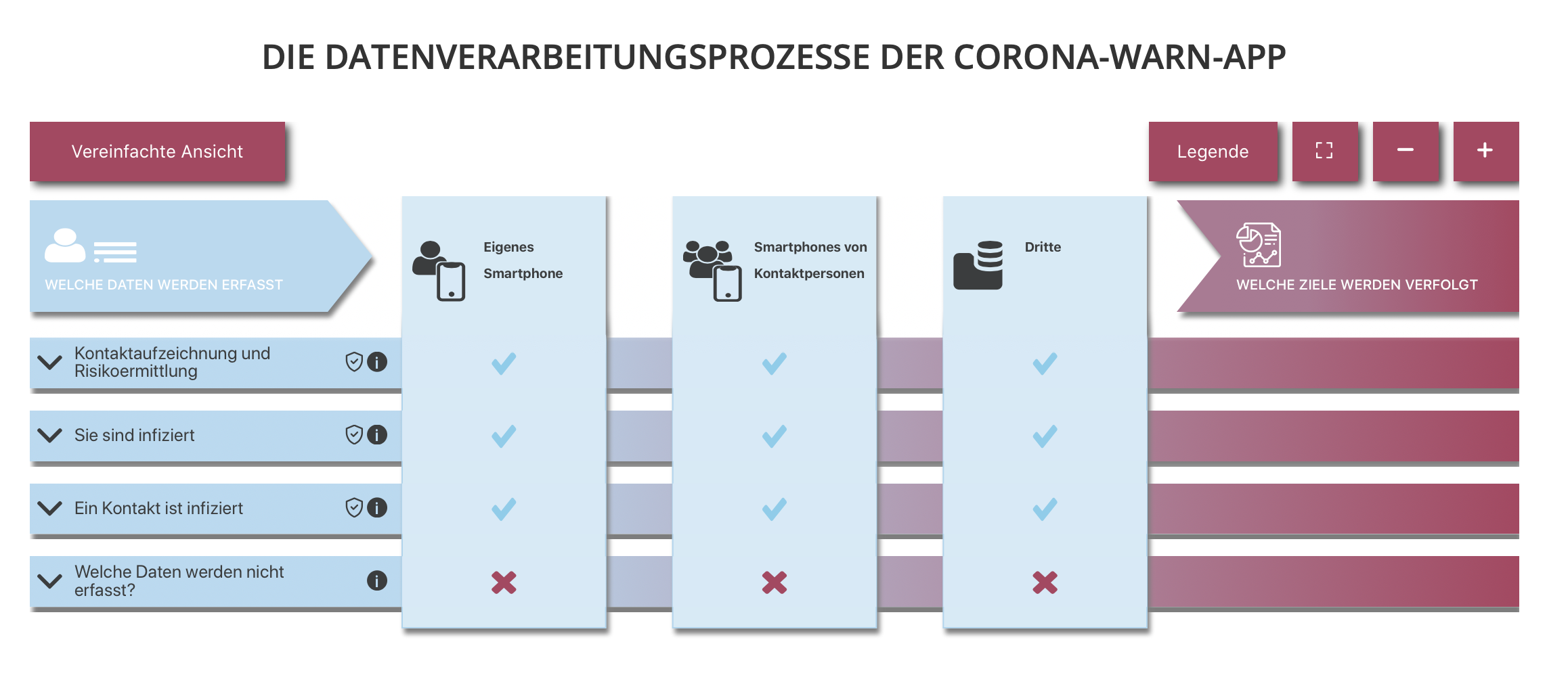 Visuelle Repräsentation der Datenprozesse der Corona-Warn-App