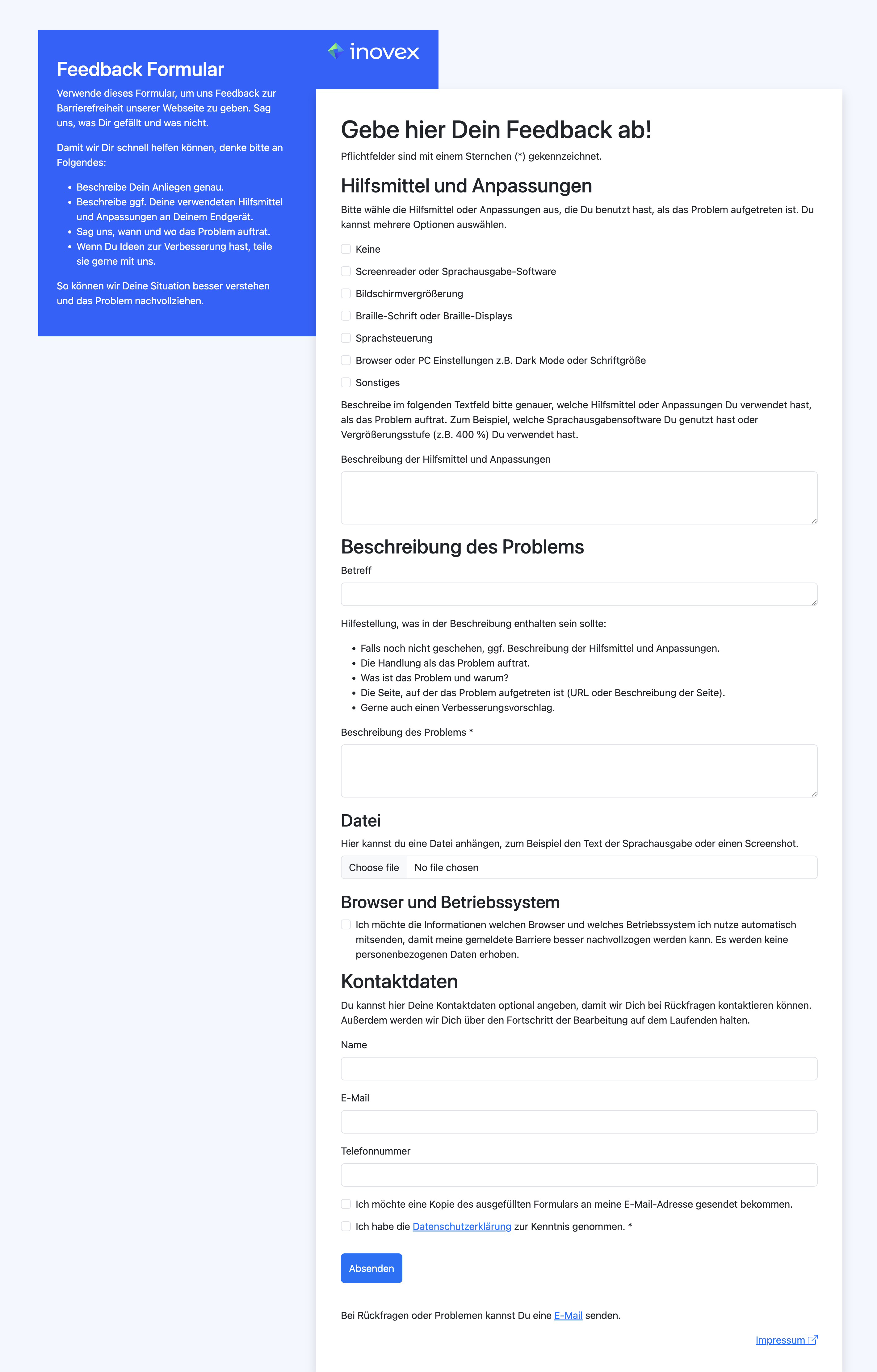 Screenshot des Feedback-Formulars