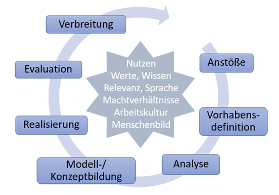 Zu Beginn des Kreislaufs stehen erste „Anstöße“, bei denen folgende Anforderungen definiert geklärt werden: